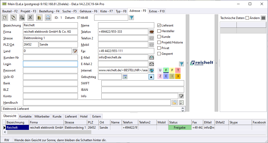 Status: Hier können zusätzliche Infos zur Adresse hinterlegt