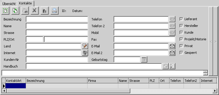 werden. Nicht alle Felder sind in der Eingabemaske der Kontakte sichtbar,