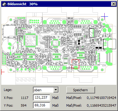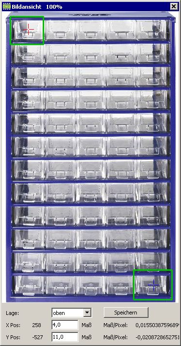 von ProjektPos anhand der hinterlegten Pos X/Y im Bild gezeigt. Bei Klick
