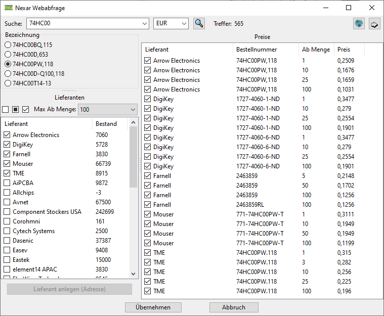 werden, erst damit kann die Nexar Suche bei den Lieferanten nach dem richtigen