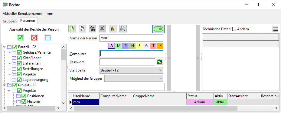 RechtMit der Rechteverwaltung können Rechte für Benutzer vergeben