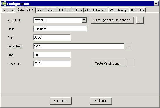 können alle Parameter der Datenbankverbindung eingegeben werden.