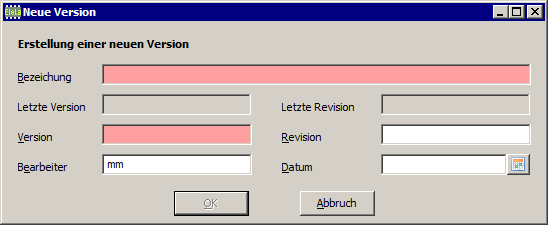 Es muss die "Bezeichnung" der Version sowie die "Version" eingetragen werden. Revision, Bearbeiter und Datum sind optional und können im Abschnitt "Version" nachträglich geändert werden. Angezeigt wird die letzte Version/Revision. Nach dem erstellen der Version ist das Projekt sowie deren Positionen nicht mehr änderbar. Alle erstellten Versionen sind in der Tabelle "Version" ersichtlich. Wenn man das Projekt ändern möchte, so muss zu erst das Projekt dafür mittels dem Menü "Version ändern" wieder freigegeben werden. Dabei erzeugt EleLa automatisch eine Kopie des Projekt-Eintrags. Die Positionen erhalten noch keine Kopie. EleLa weiß automatisch, dass sobald eine Position geändert wird die bisherige Position kopiert werden muss. Somit werden nicht unnötige Kopieen der Positions-Datensätze erzeugt. Mit "Version Zeigen" kann die Ansicht für das eine Projekt auf eine vorgängerversion umgestellt werden. Somit kann jederzeit der gesammte Stand gezeigt werden. In der Ansicht eines alten Standes können keine Änderungen vorgenommen werden.