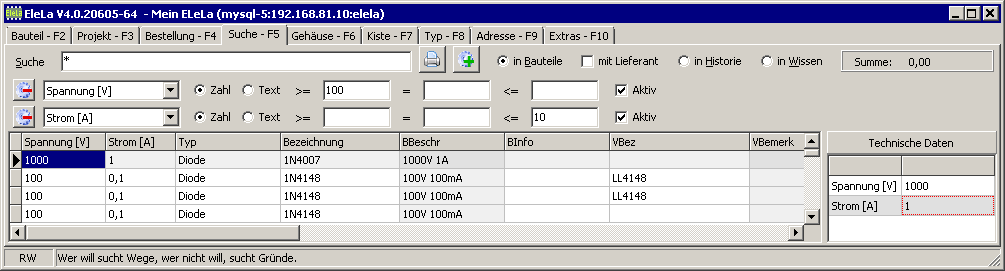 eingegeben wird, so werden alle Bauteile angezeigt.