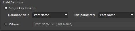 Das "Single Key Lookup Database Field" ist das Feld "Part
