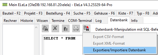 - Backup der Daten vor dem Update mit der EleLa Datenbank Exportieren