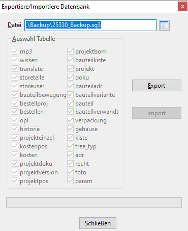 Schließen beendet die Export-/Import Fuktion und die neuen