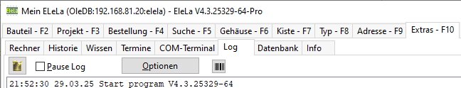 Unter Extras-F10 > Log wird mit der Taste "Optionen"