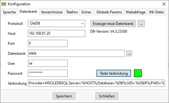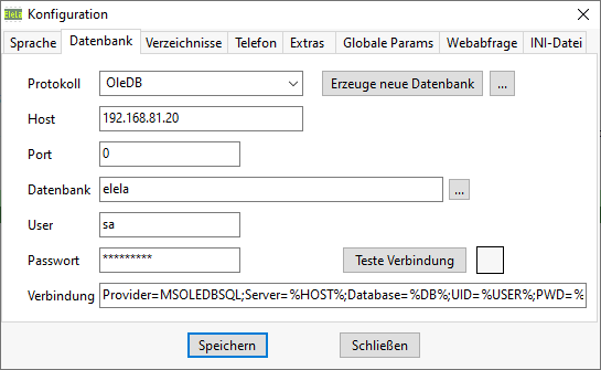 Der "ConnectionString" der Verbindung erzeugt EleLa automatisch.