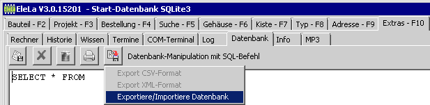 werden, sondern man kann EleLa auf "sqlite-3" im Konfigurationsdialog