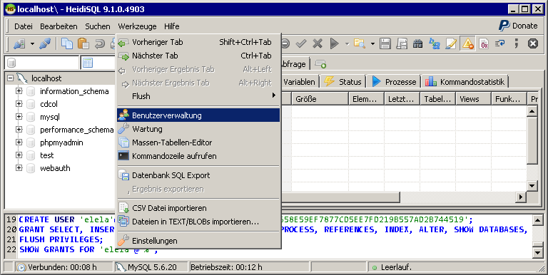 kann mit dem Tool "HeidiSQL" oder auf mit der Weboberfläche