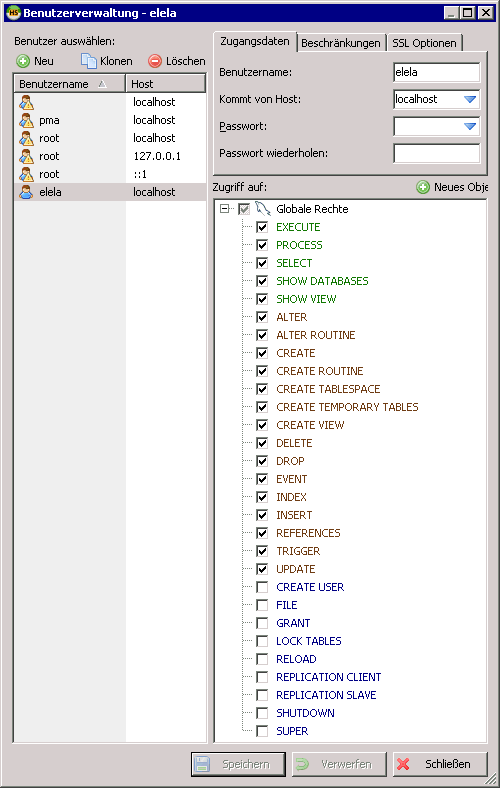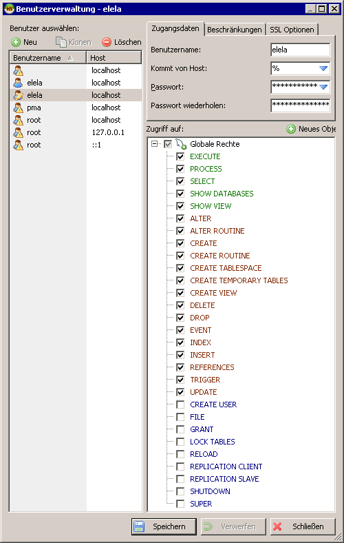 Einrichten Datenbankzugang (Benutzername / Passwort):